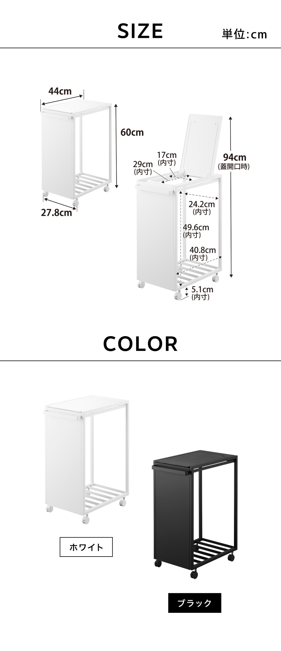●商品サイズ:約 W27.8×D44×H60cm、蓋開口時:H94cm