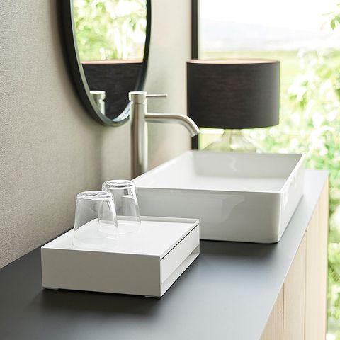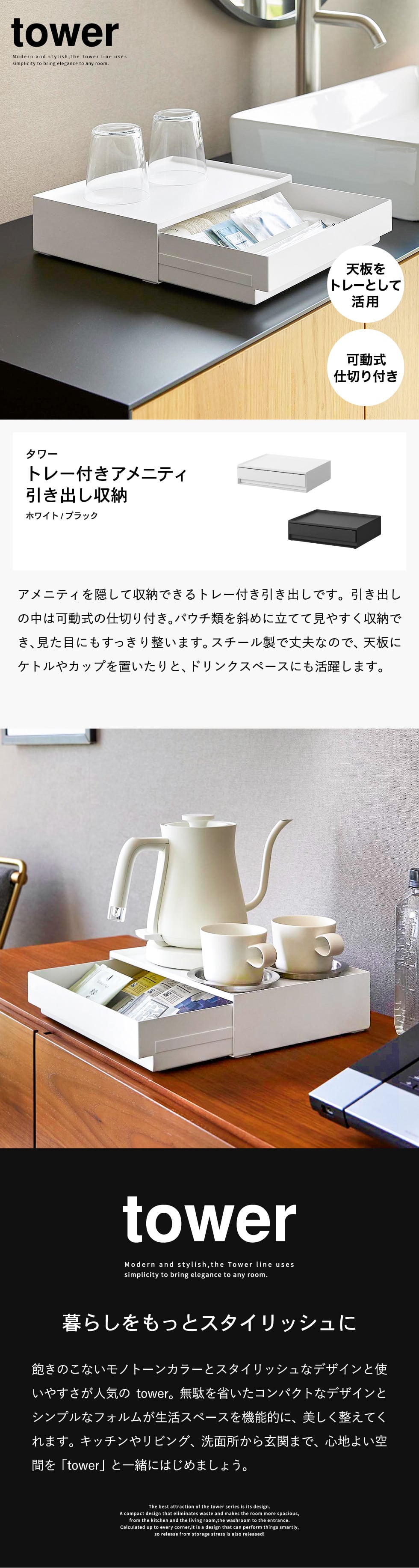 山崎実業 tower トレー付きアメニティ引き出し収納 タワー 公式 10711 10712 送料無料 / アメニティボックス アメニティケース 家電下ラック スライド式 洗面所 キッチン収納 / ホワイト
