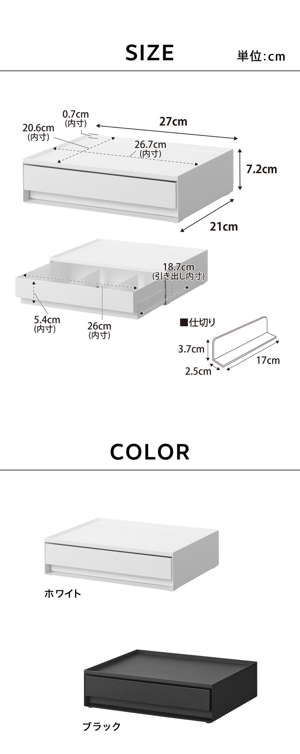 ●内寸サイズ:約 トレー:W26.7×D20.6×H0.7cm 引き出し:W26×D18.7×H5.4cm 仕切り:W17×D2.5×H3.7cm
