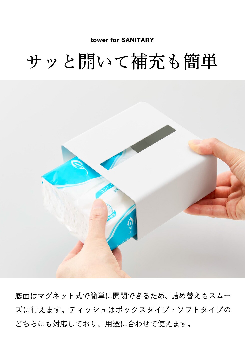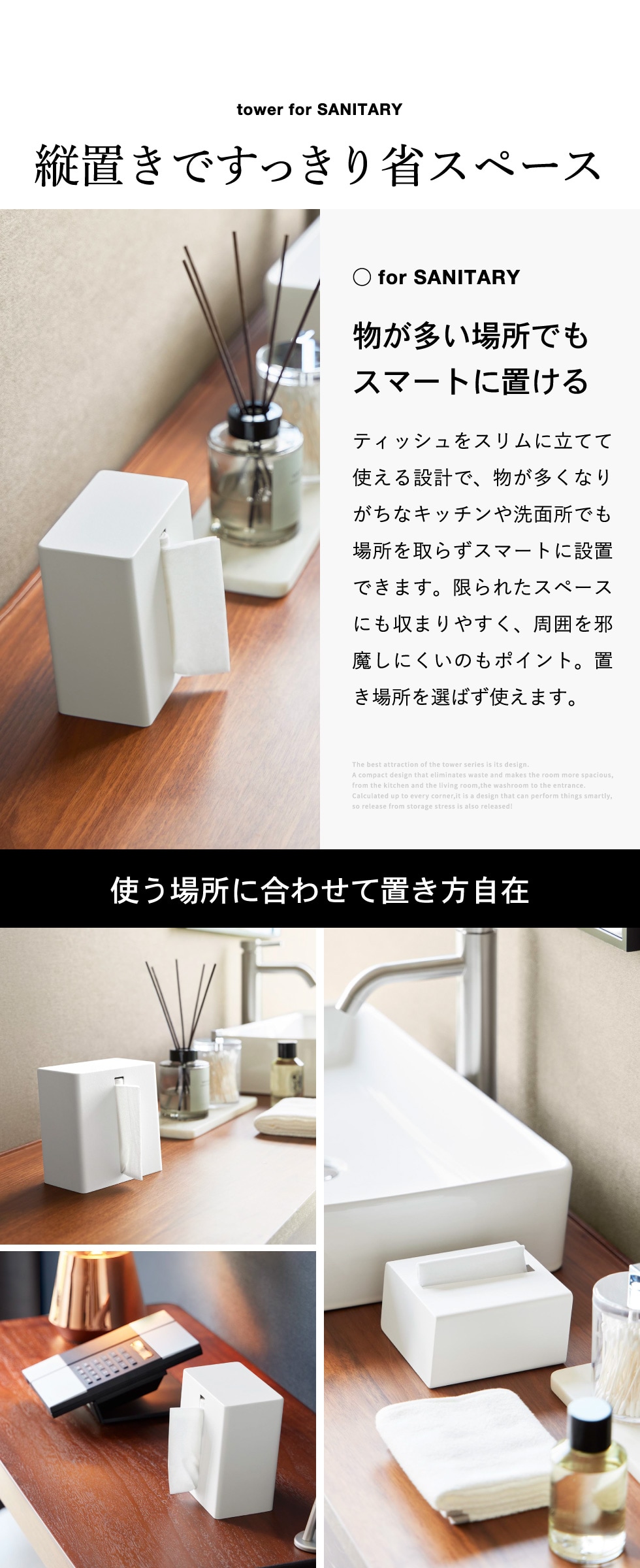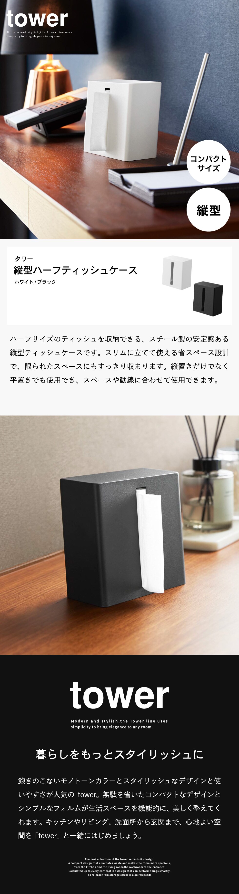 山崎実業 tower 縦型ハーフティッシュケース タワー 公式 10747 10748 / ハーフサイズティッシュ ティッシュボックス ティッシュカバー 詰め替え コンパクト 洗面所 リビング 寝室 / ホワイト