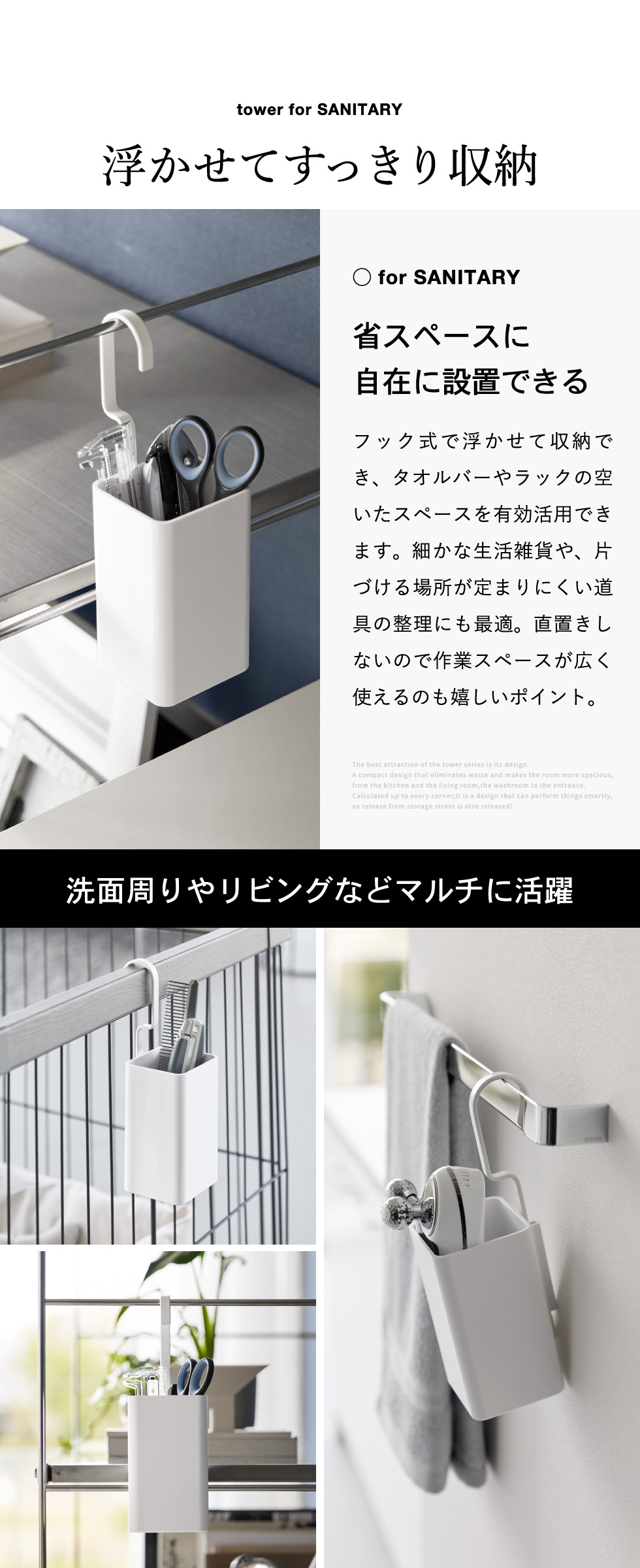 山崎実業 tower 引っ掛け収納ケース タワー S 公式 10751 10752 / 洗面所 ブラシ ヘアケア用品 美顔ローラー小物整理 洗面所 デスク周り 整理ケース タワーシリーズ yamazaki JGS / ブラック