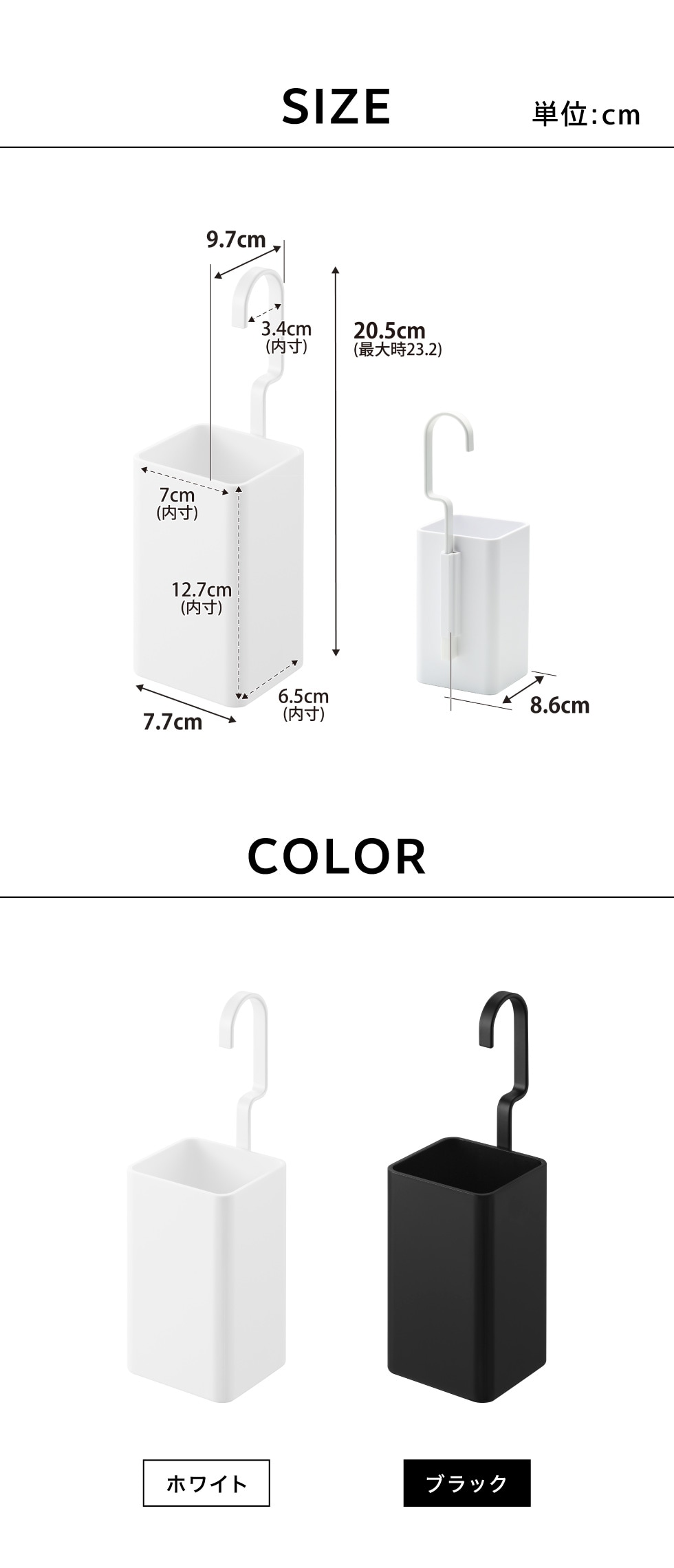 ●商品サイズ:約 W7.7×D9.7×H20.5cm(フック縦向き使用時)、W7.7×D8.6×H20.5cm(フック横向き使用時)