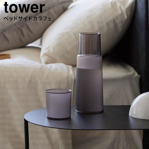 山崎実業 tower ベッドサイドカラフェ タワー 公式 10757 10758 ホワイト ブラック 送料無料 / 620mL ピッチャー ティーポット ボトル 水差し 冷水筒 麦茶ポット コップ付き 食洗器対応 耐熱 寝室 yamazaki JGS / ブラック