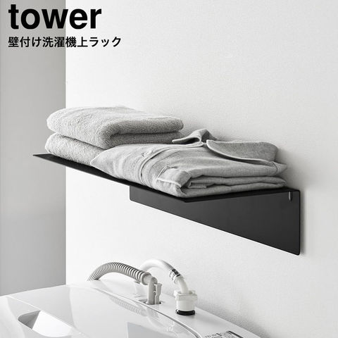 山崎実業 tower 壁付け洗濯機上ラック タワー 公式 10763 10764 送料無料 / 洗濯機ラック 洗面所 収納 脱衣所 タオルラック ランドリー 壁面収納 石こうボード壁対応 タワーシリーズ yamazaki / ブラック