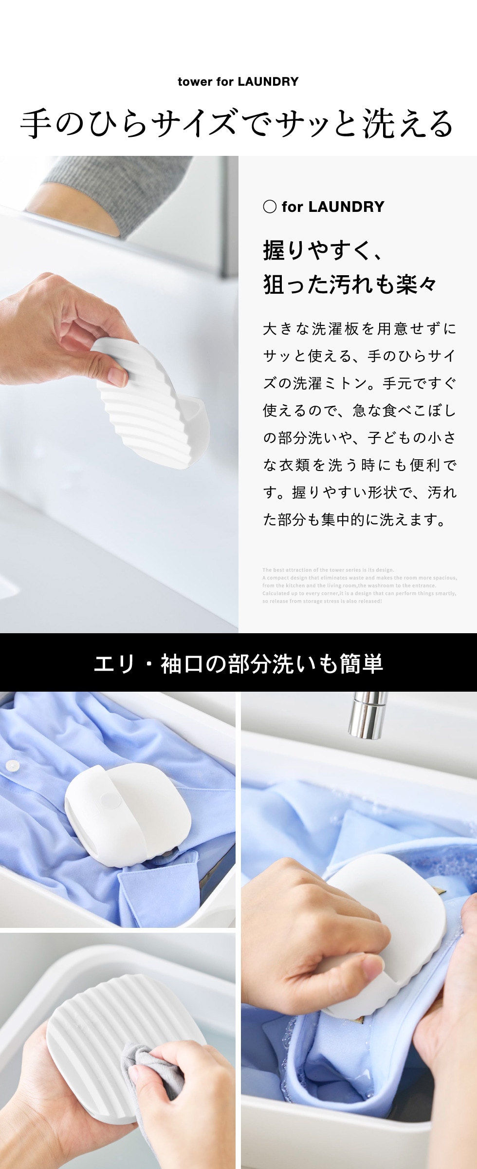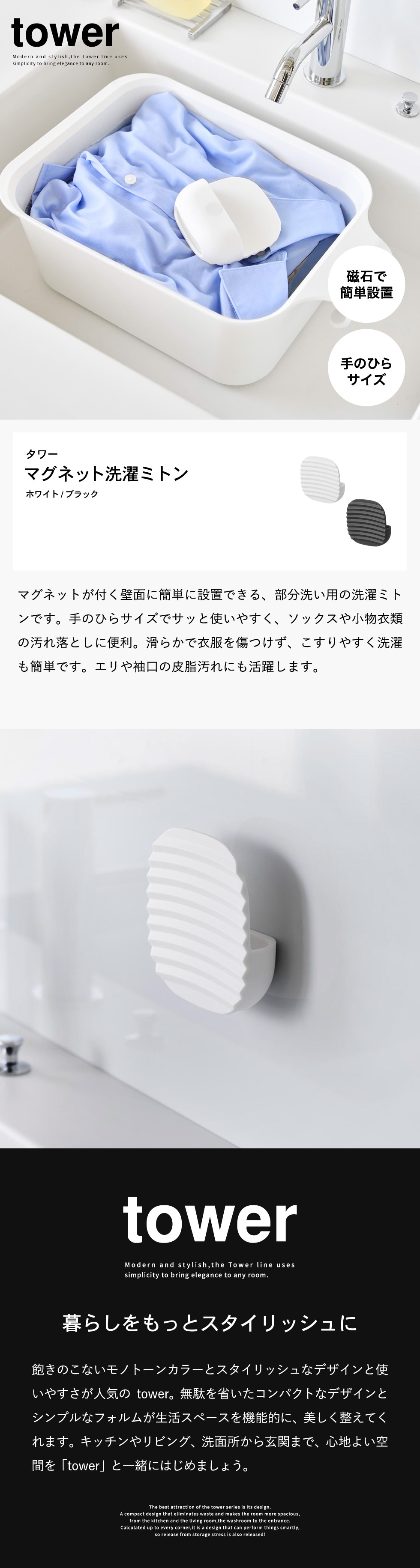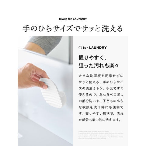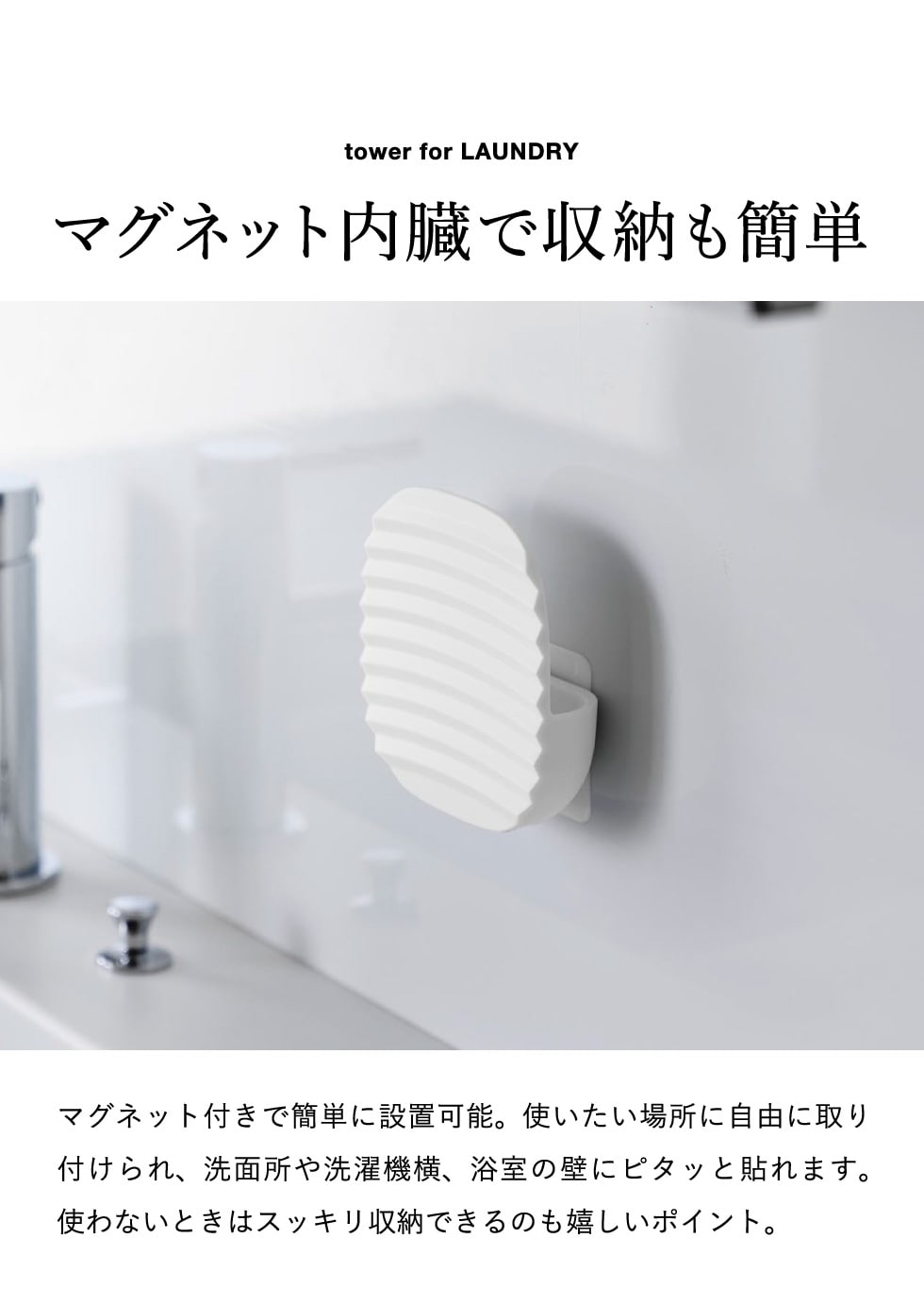 山崎実業 tower マグネット洗濯ミトン タワー 公式 10775 10776 / 洗濯ボード ウォッシュボード 泥汚れ 靴下 部分洗い 予洗い 洗濯用品 ランドリーグッズ 洗面所 浮かせる収納 JGS / ホワイト