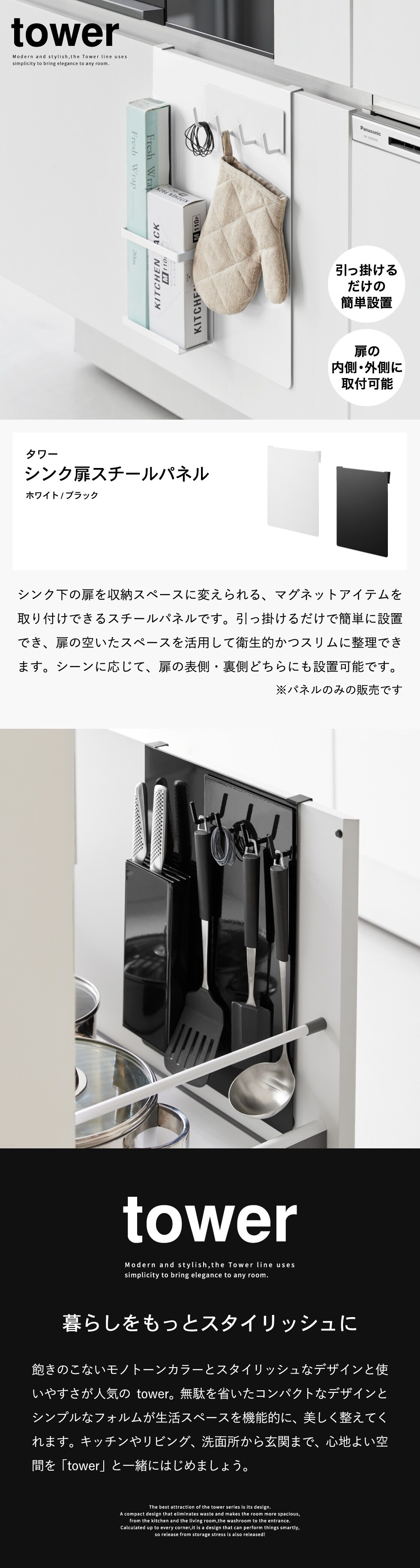 山崎実業 tower シンク扉スチールパネル タワー 公式 10783 10784 送料無料 / マグネット収納 調理器具 吊り下げ マグネット貼り付け キッチン収納 洗面所 浮かせる収納 タワーシリーズ yamazaki / ブラック