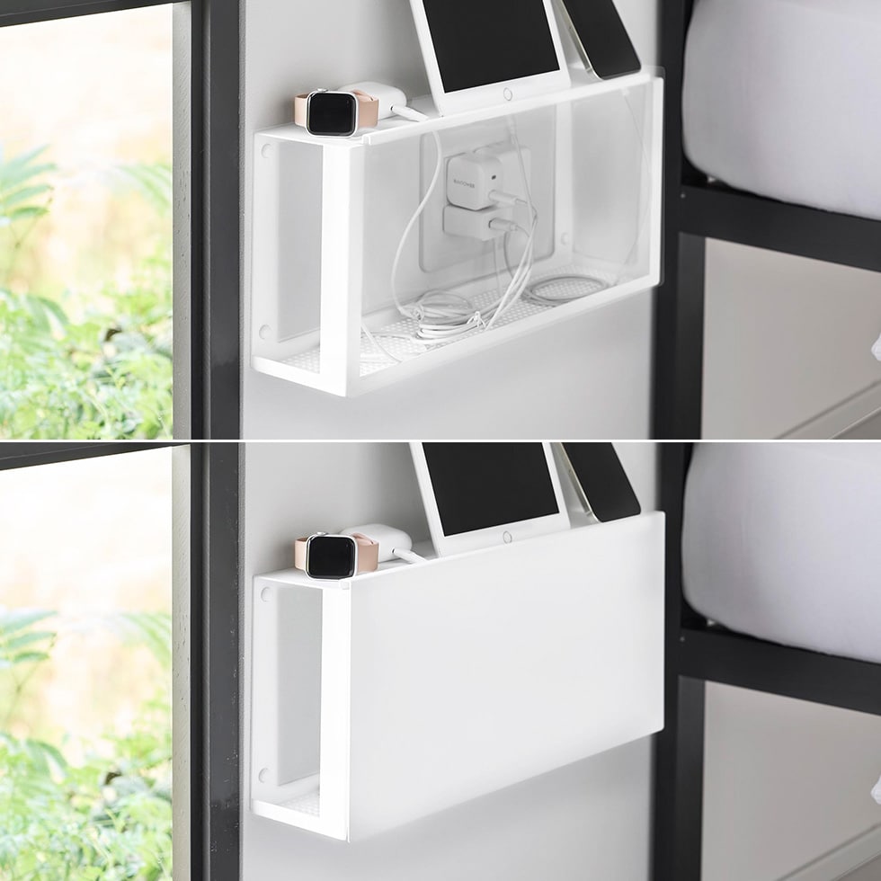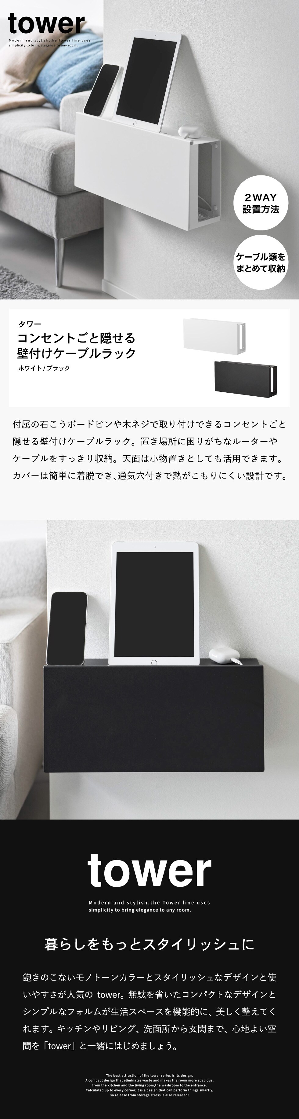 山崎実業 tower コンセントごと隠せる壁付けケーブルラック タワー 公式 10785 10786 送料無料 / ケーブル収納 ルーター収納 ケーブルボックス コンセント収納 浮かせる収納 yamazaki / ブラック
