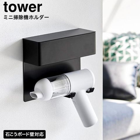 山崎実業 tower 壁付けミニ掃除機ホルダー タワー 公式 10787 10788 送料無料 / コードレスクリーナー ハンディクリーナー コードレス掃除機 クリーナースタンド リビング デスク周り / ブラック