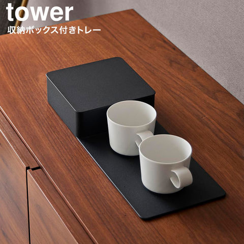tower 収納ボックス付きトレー タワー 山崎実業 公式 10795 10796 送料無料 / アメニティボックス 小物入れ 小物収納 小物置き アメニティグッズ トレイ 蓋付き 洗面所 タワーシリーズ yamazaki / ブラック