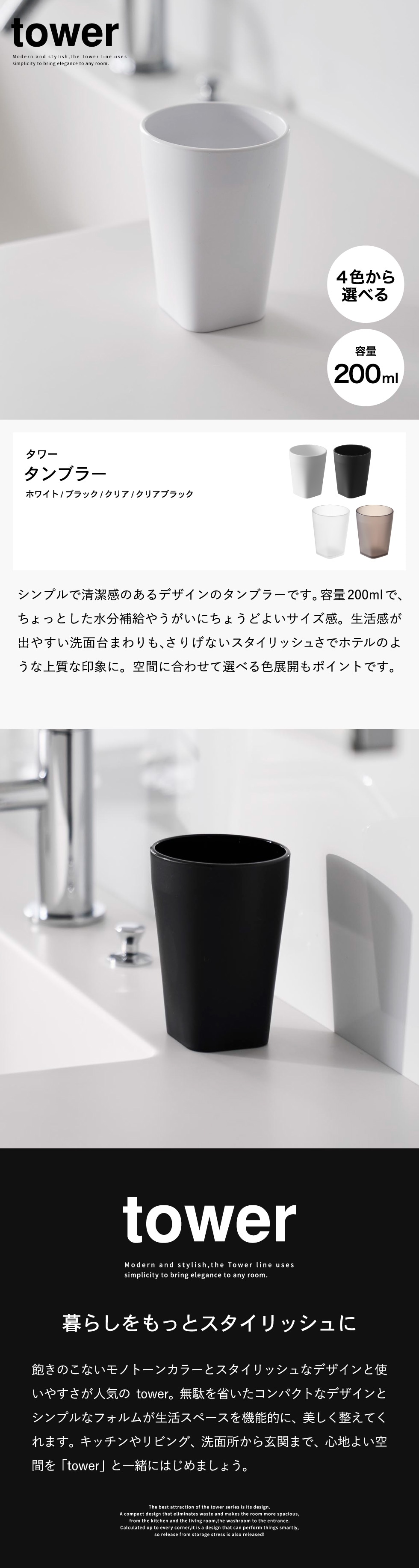 山崎実業 tower タンブラー タワー 公式 10813 10814 10815 10816 / 洗面所 洗面台 コップ うがいコップ 歯磨きコップ タワーシリーズ yamazaki / ブラック