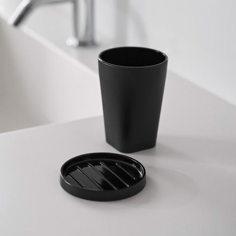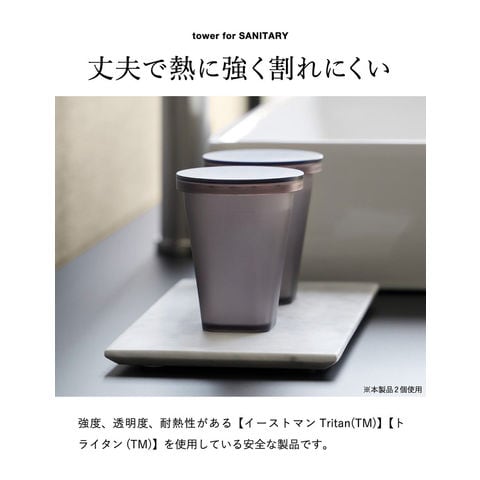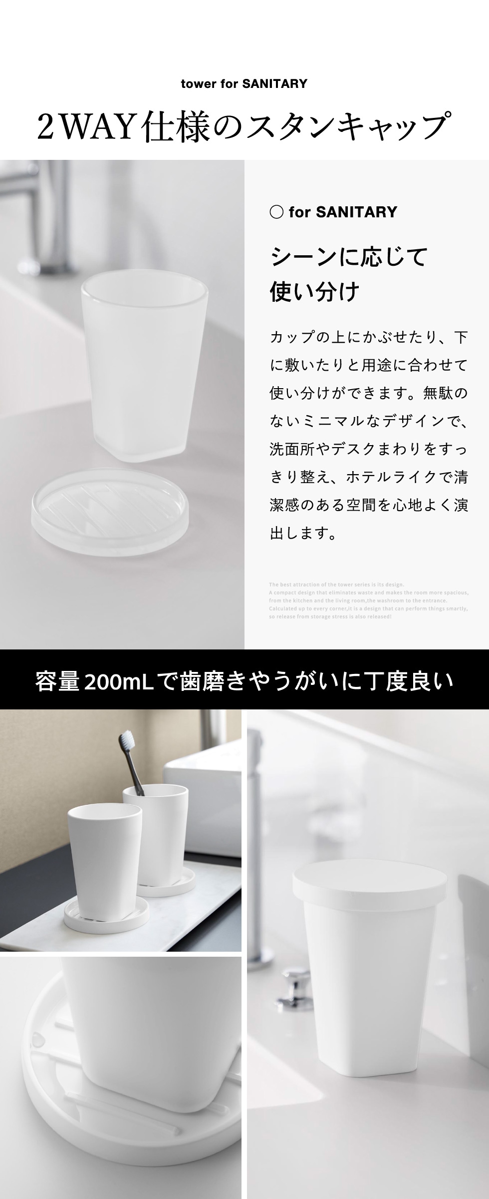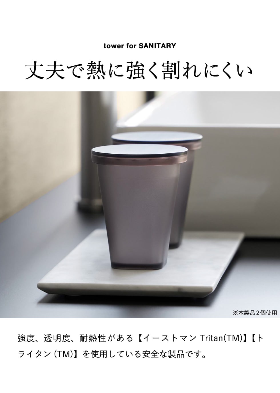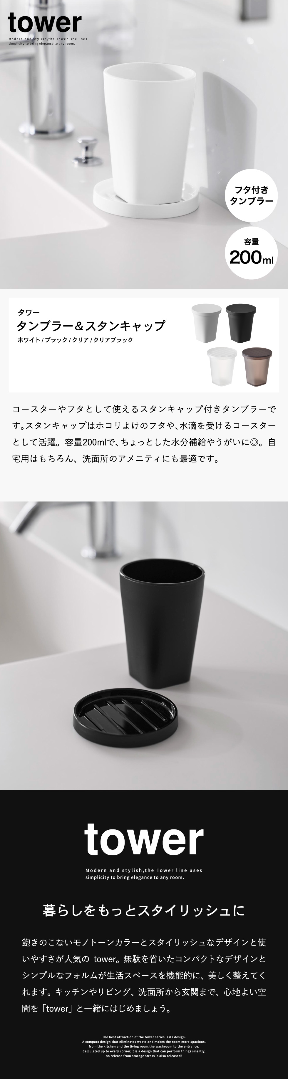 山崎実業 tower タンブラー&スタンキャップ タワー 公式 10817 10818 10819 10820 / 洗面所 洗面台 コップ うがいコップ 歯磨きコップ コースター 蓋 タワーシリーズ yamazaki / ブラック