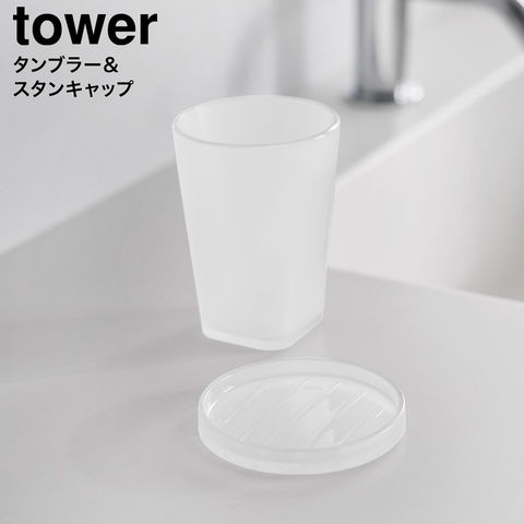 山崎実業 tower タンブラー&スタンキャップ タワー 公式 10817 10818 10819 10820 / 洗面所 洗面台 コップ うがいコップ 歯磨きコップ コースター 蓋 タワーシリーズ yamazaki / クリア