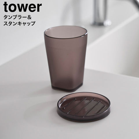 山崎実業 tower タンブラー&スタンキャップ タワー 公式 10817 10818 10819 10820 / 洗面所 洗面台 コップ うがいコップ 歯磨きコップ コースター 蓋 タワーシリーズ yamazaki / クリアブラック