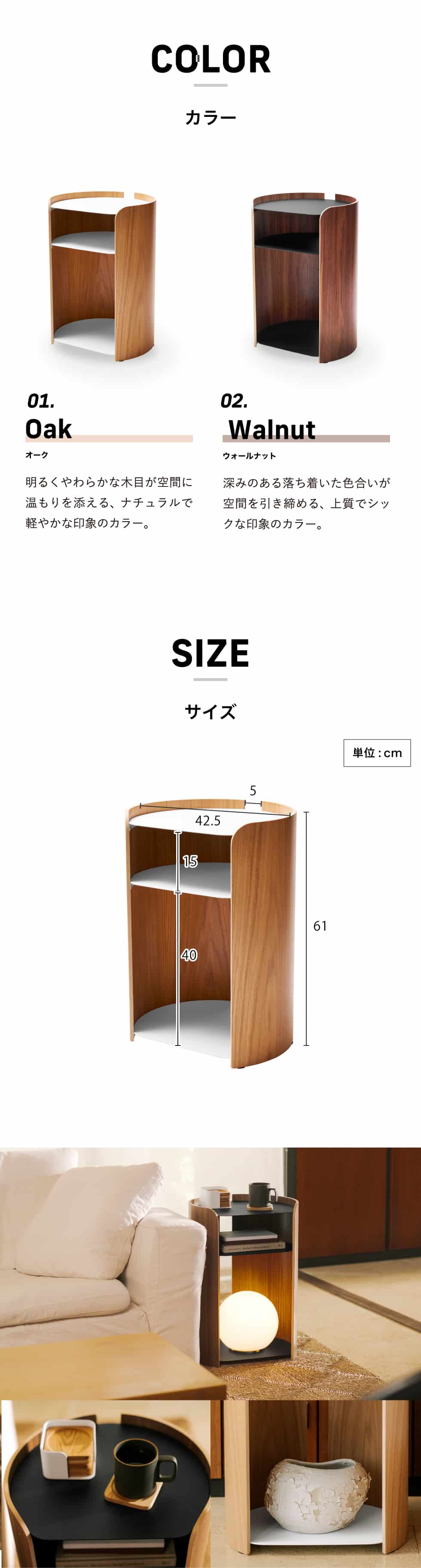 ●内寸サイズ:約 天板:W40.6×D35.6×H2.5cm 棚中段:W40.6×D35.6×H15cm 棚下段:W40.6×D35.6×H40cm