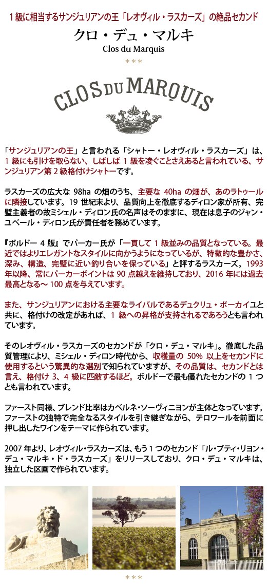 2017 ラ プティット マルキーズ デュ クロ デュ マルキ 750ml サンジュリアン ボルドー 赤ワイン コク辛口 ワイン ^ACLC2317^