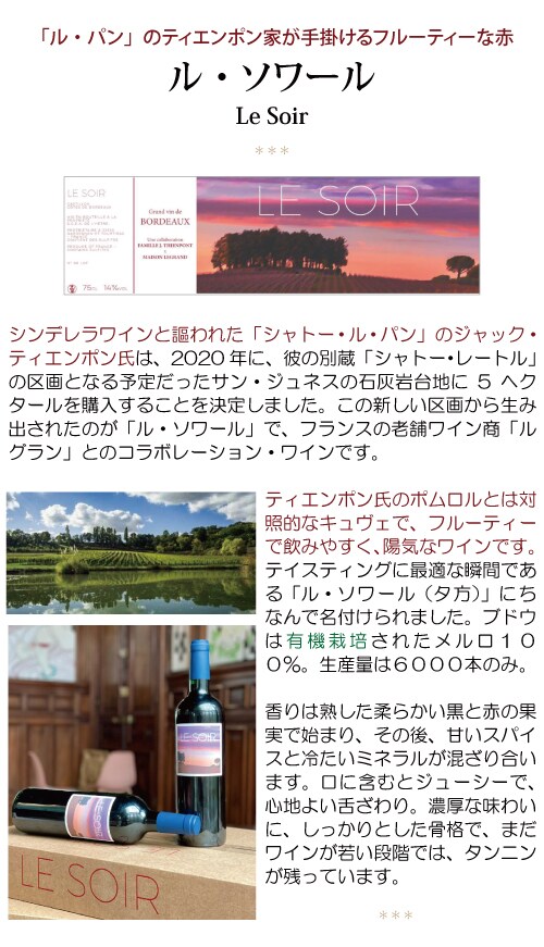 2022 ル ソワール 750ml カスティヨン/コート ド ボルドー フランス 赤ワイン コク辛口 ワイン ^ANLS0122^