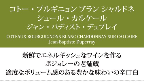 2021 コトー ブルギニョン ブラン シャルドネ シュール カルケール 750ml ジャン バディスト デュプレイ 白ワイン コク辛口 ^B0DBSC21^