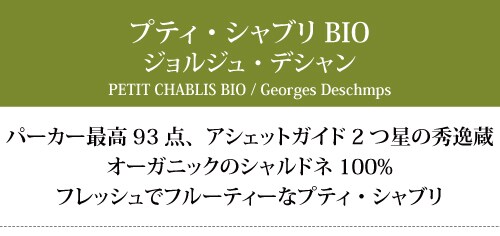 2022 プティ シャブリ BIO 750ml ジョルジュ デシャン / ドメーヌ ヴリニョー フランス 白ワイン コク辛口 ワイン ^B0DSPT22^