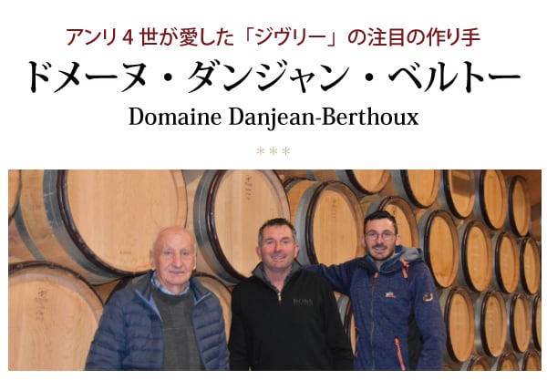 現在でも「良王」として歴代フランス国王の中で、最も尊敬を集めているアンリ4世が、愛したワインと言われるのが、シャロネーズ地区の中心に位置する「ジヴリー」。近年、その品質の高さに漸く注目されつつあるこの地で、1993年に創業した作り手が「ドメーヌ・ダンジャン・ベルトー」。家族で営むドメーヌで、1958年にブドウ栽培を始めてから4世代に渡ります。