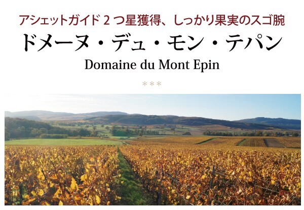 有名評価誌多数高評価、パーカー最高94点獲得、ミシュラン星獲得の有名レストラン採用など、信頼と実績を誇るマコネ地方ダバイエの秀逸蔵「ドメーヌ・ド・ラ・クロワ・スナイエ」。この蔵を手掛ける凄腕マルタン兄弟の別ドメーヌが「ドメーヌ・デュ・モン・テパン」です。