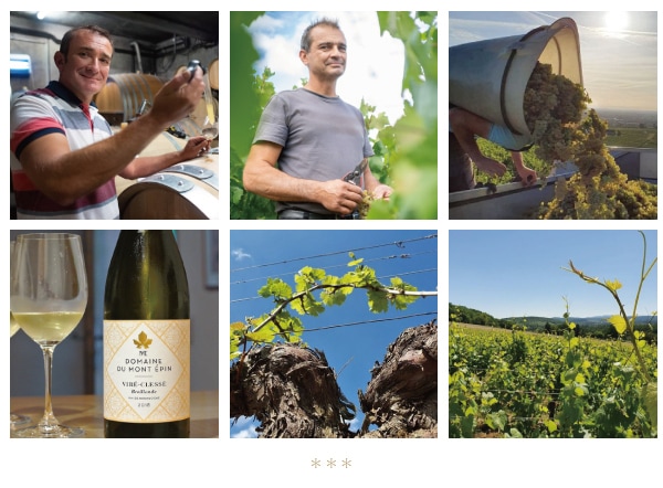 2015年にマルタン兄弟によって復活したモン・テパンでは、ヴィレ・クレッセとマコン・ペロンヌという有名なアペラシオンで4つのワインを作っています。2019年には15ヘクタールのすべての畑で有機栽培への変換が完了し、オーガニック認証を取得しました。ブドウは樹齢35~55年ほどの古木です。