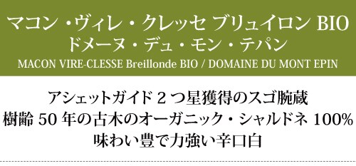 2020 マコン ヴィレ クレッセ ブリュイロン BIO 750ml ドメーヌ デュ モン テパン 白ワイン コク辛口 ワイン ^B0EPBU20^