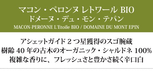 2023 マコン ペロンヌ レトワール BIO 750ml ドメーヌ デュ モン テパン ブルゴーニュ フランス 白ワイン コク辛口 スナイエ ^B0EPPE23^