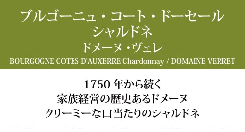 「ドメーヌ・ヴェレ」は、1759年からブドウ栽培を続けている歴史ある家族経営のドメーヌです。パリから2時間足らずのブルゴーニュ北部、グラン・オーセロワとシャブリでワインを作っています。