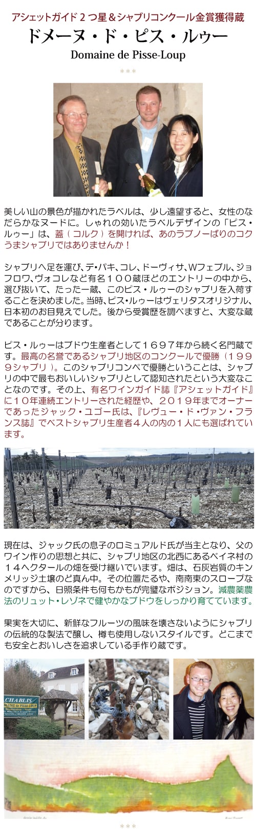 2022 シャブリ キュヴェ アントワーヌ 750ml ドメーヌ ド ピス ルゥー ブルゴーニュ フランス 白ワイン コク辛口 ワイン ^B0PSCM22^