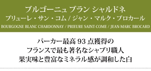 2022 ブルゴーニュ ブラン シャルドネ 750ml プリューレ サン コム/ジャン マルク ブロカール フランス 白ワイン コク辛口 ^B0RDBB22^