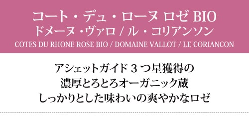 2023 コート デュ ローヌ ロゼ BIO 750ml ドメーヌ ヴァロ / ル コリアンソン ローヌ フランス ロゼワイン コク辛口 ^C0CACZ23^
