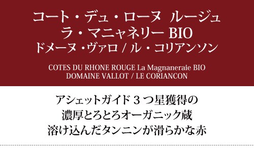 2021 コート デュ ローヌ ルージュ ラ マニャネリ BIO 750ml ヴァロ / ル コリアンソン ローヌ フランス 赤ワイン コク辛口 ^C0CAMN21^