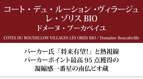 以前、世界的に有名なビオ蔵の展示会「ミレジム・ビオ」に出かけた際、果実の凝縮感が群を抜いて濃く一番星で、即入荷を決めたのが、このドメーヌ・ブーカベイユ。ビオワインには、厳しいとされるロバート・パーカー氏でさえ、「将来有望!」と熱い視線を送る注目の秀逸蔵です。