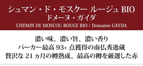 2019 ヴァン ド ペイ ドック シュマン ド モスクー ルージュ BIO 750ml ドメーヌ ガイダ 南仏 フランス 赤ワイン コク辛口 ^D0GYMR19^