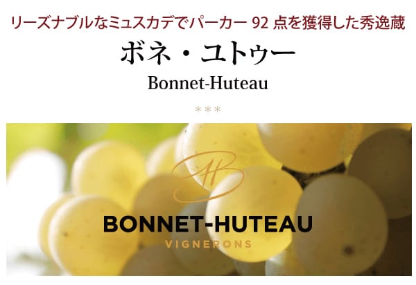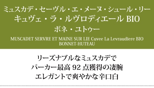 ヴェリタス一押しのミュスカデが、ついにやりました!「シャトー・ラ・タルシエール」の作り手「ボネ・ユトゥー」さんが、アドヴォケイト誌でリーズナブルなミュスカデながら、なんと、驚愕のパーカー92点を獲得!