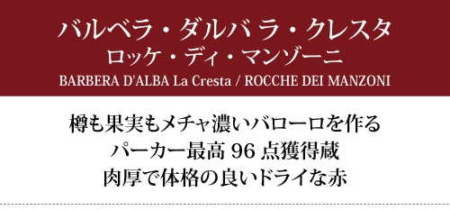 2019 バルベラ ダルバ ラ クレスタ 750ml ロッケ ディ マンゾーニ 赤ワイン コク辛口 ワイン ^FARMBR19^