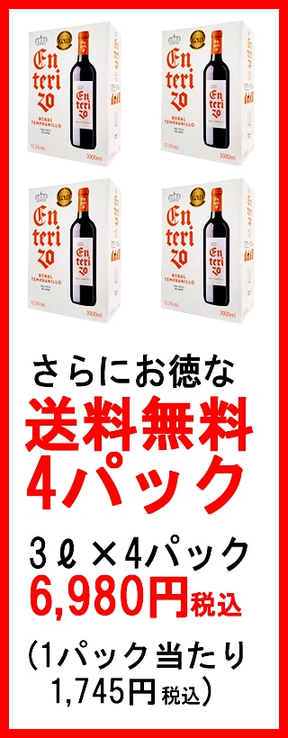 ボックスワイン 赤ワイン 辛口 3000ml 3L エンテリソ ティント バッグ イン ボックス ボデガス コヴィニャス スペイン 箱ワイン 大容量 パックワイン box ^HJCIBTZ0^