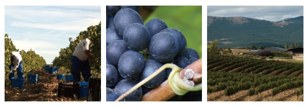 ブドウ栽培には、 自然環境に配慮し除草剤は一切不使用。 栽培されるブドウ品種は、 55%がテンプラニーリョで、シラー、 カベルネ・ソーヴィニヨン、メルローのほか、 白品種では唯一、ゲヴェルツトラミネールを栽培しています。天然の肥料は、 各ブドウ品種と土壌のタイプにより使い分け、手の掛かる剪定作業も2回行うことで病気を防ぎ、 濃厚なエキスが凝縮したブドウが収穫されます。