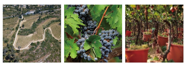 高密集度×強剪定=低収穫を実践しており、イスラエルの標準的な栽培密度は2200本/haですが、カステルでは4400本~6700本/haであり、平均50hl/hの収穫量。