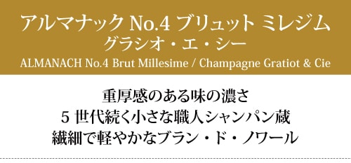 グラシオ エ シー No.4 ブリュット ミレジム 2016 750ml アルマナック シャンパン シャンパーニュ 白泡 コク辛口 ^VAGGAM16^