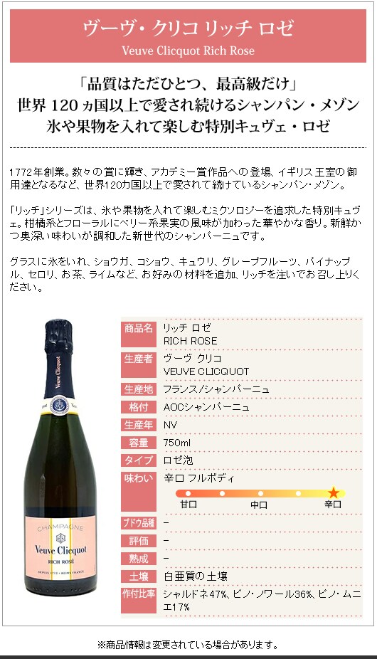 ヴーヴ クリコ リッチ ロゼ オン アイス 箱なし 正規品 750ml シャンパン フランス シャンパーニュ ロゼ泡 甘口 ワイン ^VAVC82Z0^