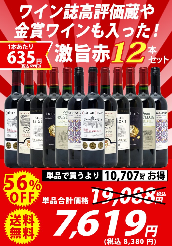 送料無料 ワイン ワインセット ワイン誌高評価蔵や金賞蔵ワインも入った激旨赤12本セット (6種類各2本) ^W0AKB9SE^