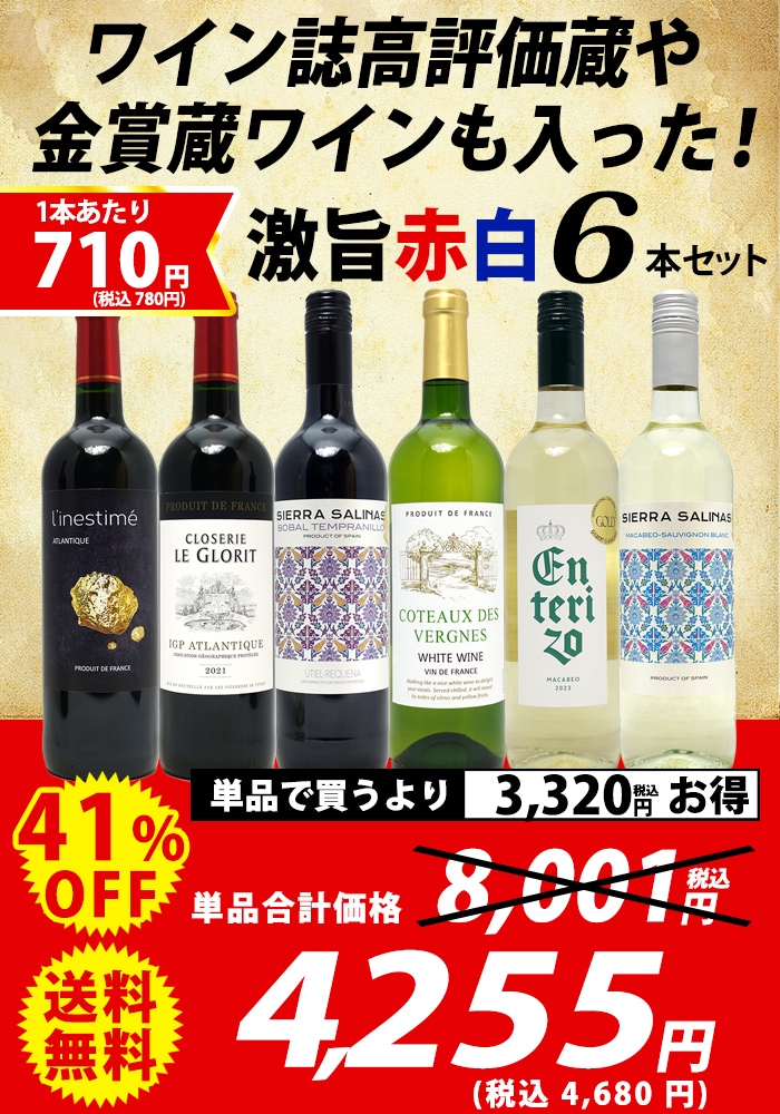 送料無料 ワイン ワインセット 高評価蔵や金賞蔵も入った激旨赤白6本セット 飲み比べセット (赤3本+白3本) ギフト ^W0AS17SE^