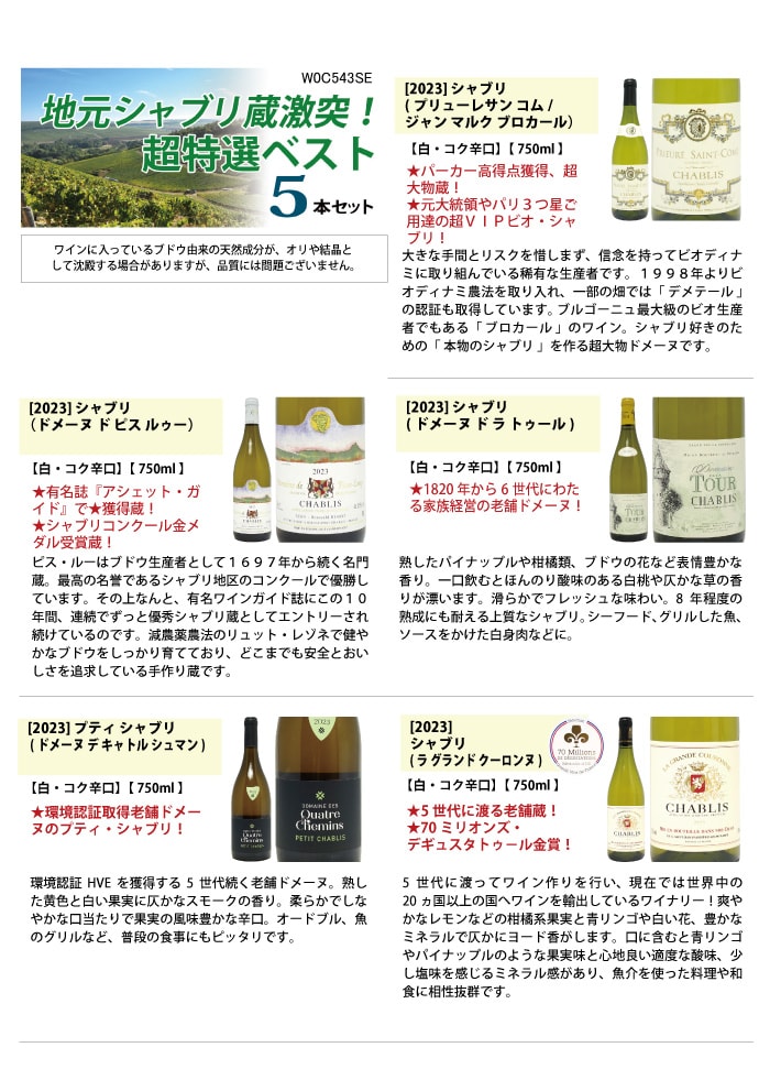送料無料 ワイン ワインセット 地元シャブリ101蔵激突 超特選ベスト白5本セット ^W0C543SE^