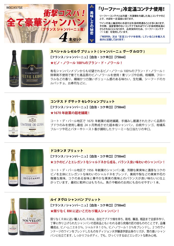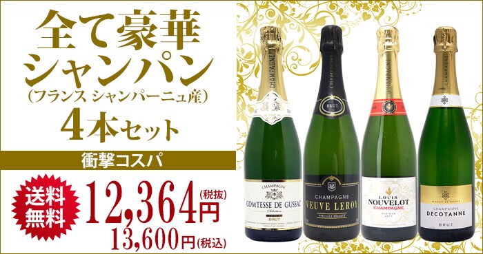 送料無料 ワイン ワインセット 衝撃コスパ 全て豪華シャンパン(フランス シャンパーニュ産)4本セット ^W0CX61SE^