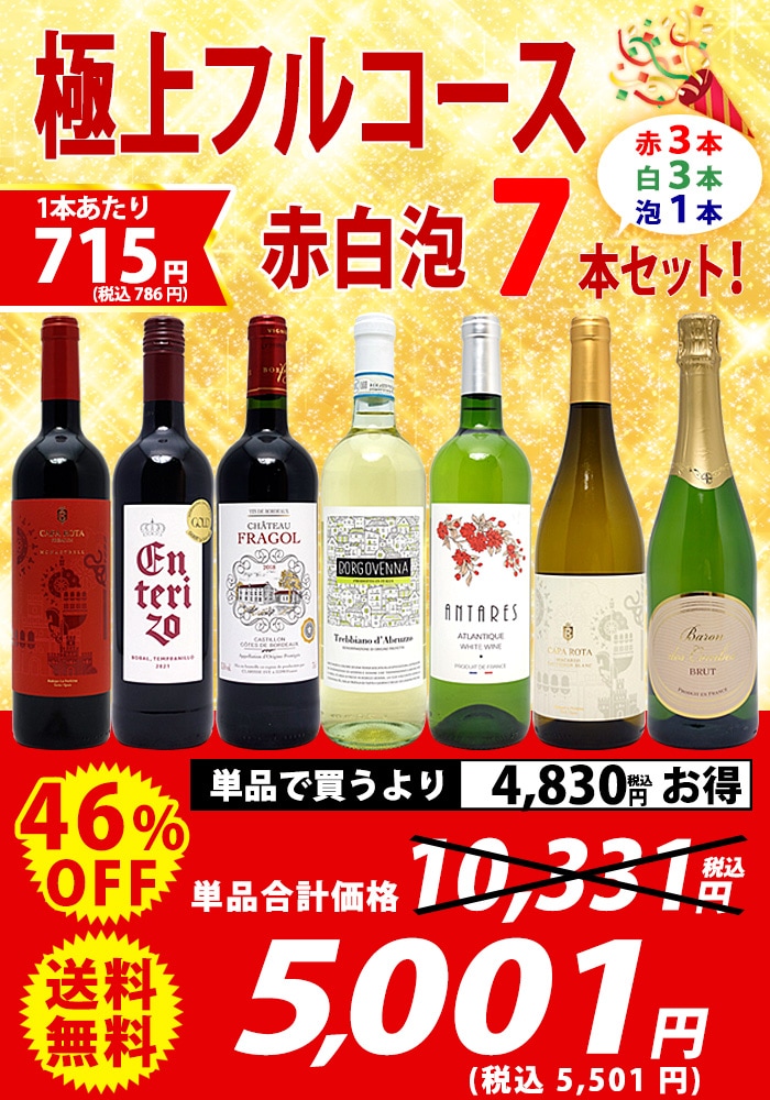 送料無料 ワイン ワインセット 極上フルコース 赤白泡7本セット (赤3本、白3本、泡1本) ^W0DS01SE^