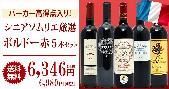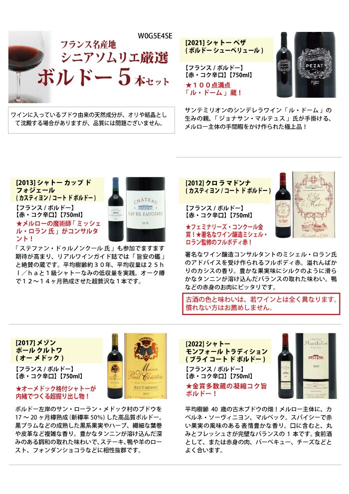 送料無料 ワイン ワインセット ワンランク上 シニアソムリエ厳選ボルドー赤5本セット ^W0G5E5SE^