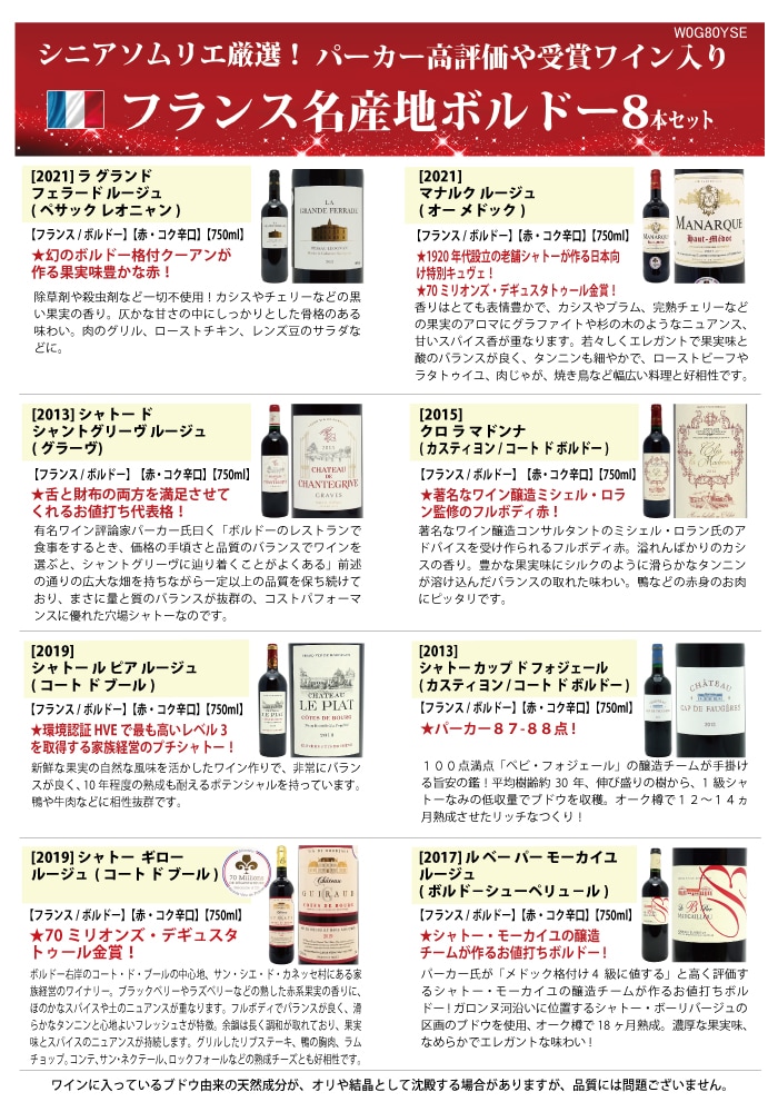 送料無料 ワイン ワインセット シニアソムリエ厳選 ボルドー赤8本セット ^W0G80YSE^