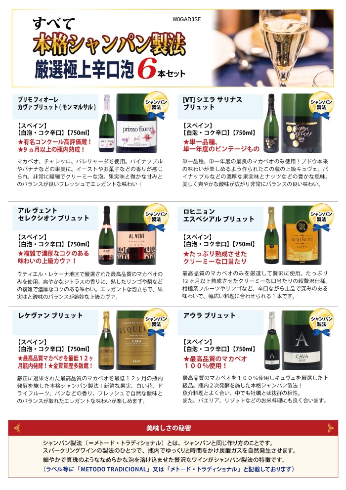 送料無料 ワイン ワインセット すべて本格シャンパン製法の辛口 厳選極上の泡6本セット スパークリング ^W0GAD3SE^