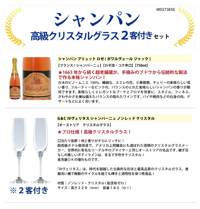 送料無料 ワイン ワインセット ギフトセット シャンパンロゼ1本+高級クリスタルグラス2客 ギフト プレゼント ^W0GT36SE^